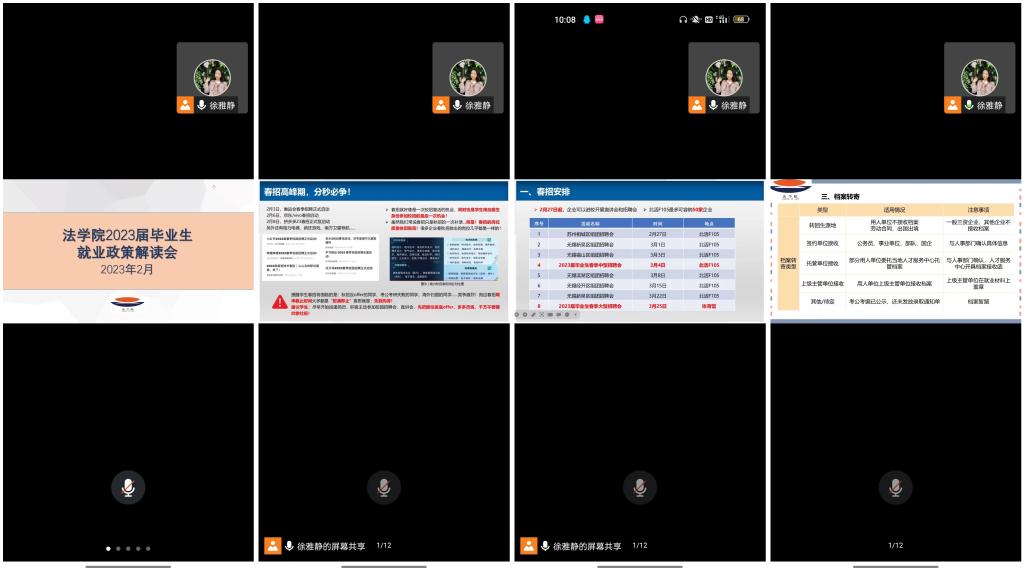 首先,徐雅静对就业形势分析与春招安排做了简要说明,引导毕业生保持平实之心,从实际出发选择职业和工作岗位,合理就业预期,积极主动参加校园招聘会和宣讲会,树立正确的职业观、择业观和成才观;其次,就不再发放《就业报到证》的最新政策进行了解读,告知学生不再将就业报到证作为办理高校毕业生招聘录用、落户、档案接收转递等手续的必需材料,同时建立毕业去向登记制度,提醒毕业生按要求做好去向登记;再次,徐雅静就档案转寄和查阅的要求和流程做了简要说明;最后,她针对就业签约、政审中常见问题进行解答,为毕业生就业提供了较为明确的方向。之后,由毕业生针对自己疑惑的问题进行提问,徐雅静线上耐心解答,消除了毕业生心中的疑虑。